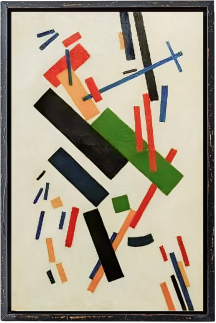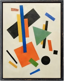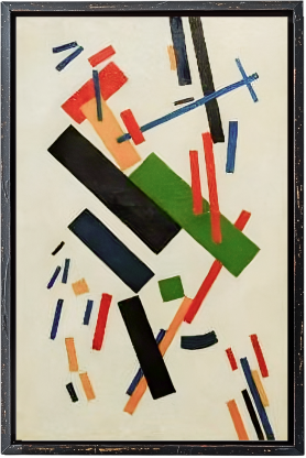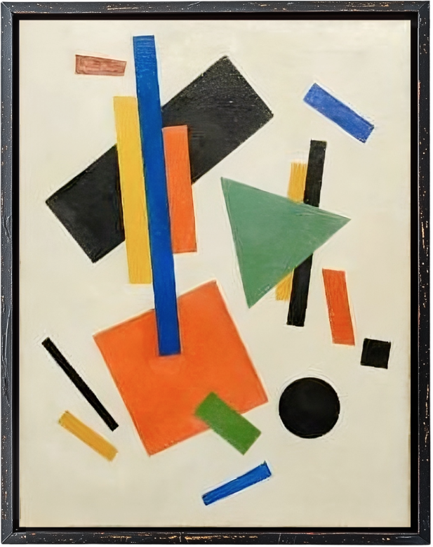 A bold and balanced Suprematist composition reflecting Malevich’s theory of “pure sensation.”